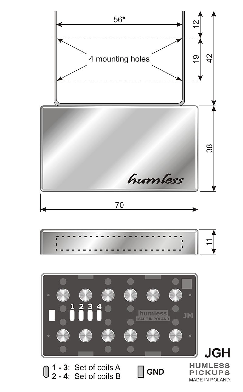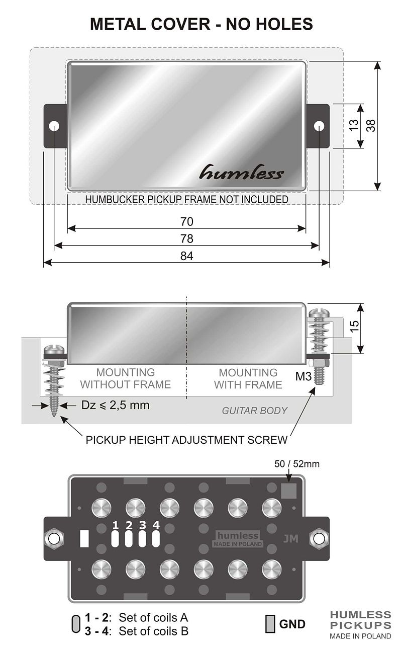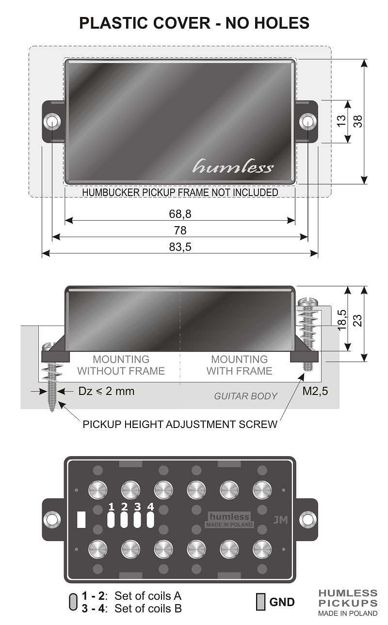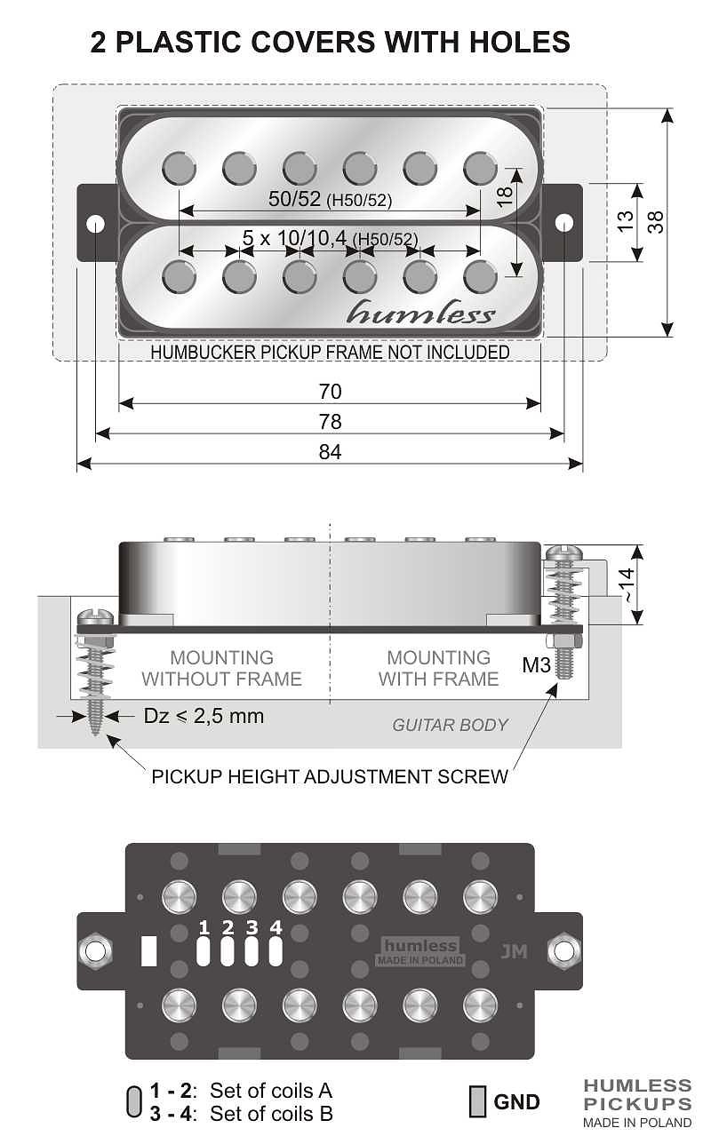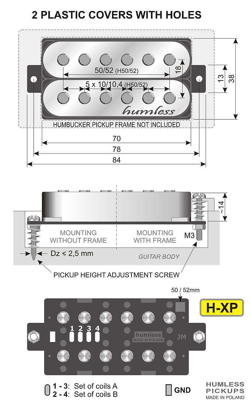 HUMLESS-H humbuckers universal pickups, predisposed to a